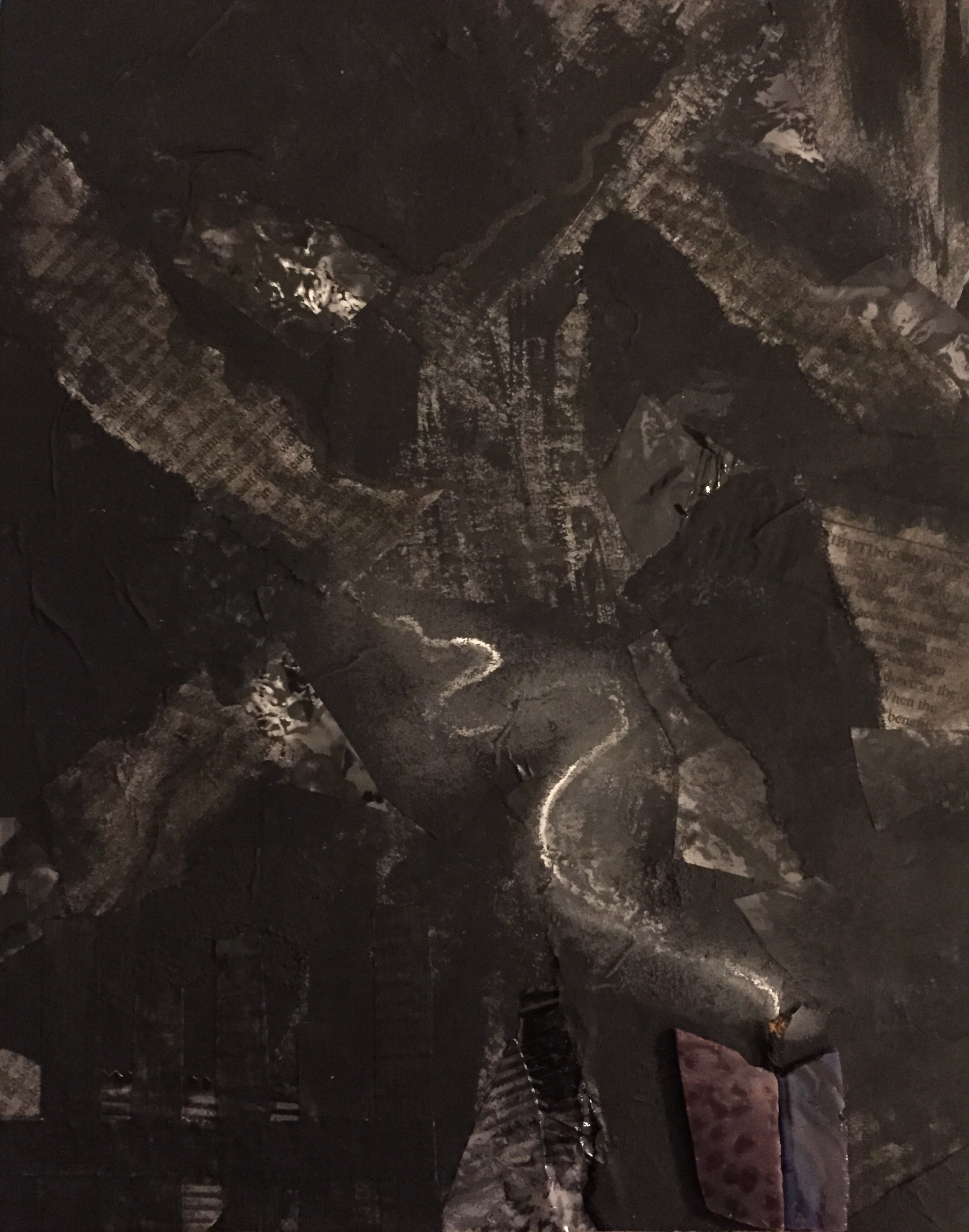 So here we are. Good Friday. And I kept imagining a just-snuffed candle, complete with the charred smell of a smoking wick. The smell lingers, whether it’s in a darkened sanctuary or my lamp-lit living room. In this particular visual candle question, newspaper is part of the background, again representing current events and darkness-feeding discourse. Look closely at the bottom left corner and you’ll find a fence. Maybe it’s for the border walls some people want to build or maybe it’s for the smaller ones we lean on every day to separate ourselves from things and people we don’t understand. But if there’s anything we can learn in the darkness maybe it’s that we’re all there at some point or another. For some reason or another.