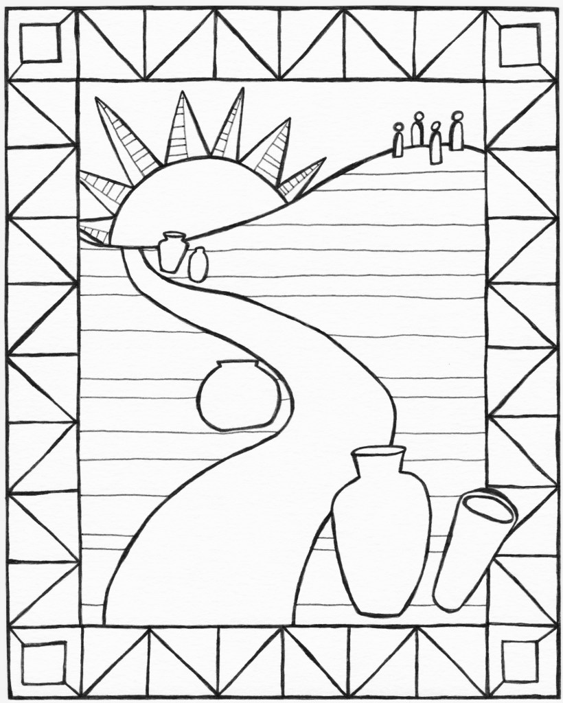 Bulletin cover coloring page inspired by Isaiah 46:1-4 and 2 Corinthians 4:7-12, for my ordination service at Davidson College Presbyterian Church; Oxford, MS, March 2017.